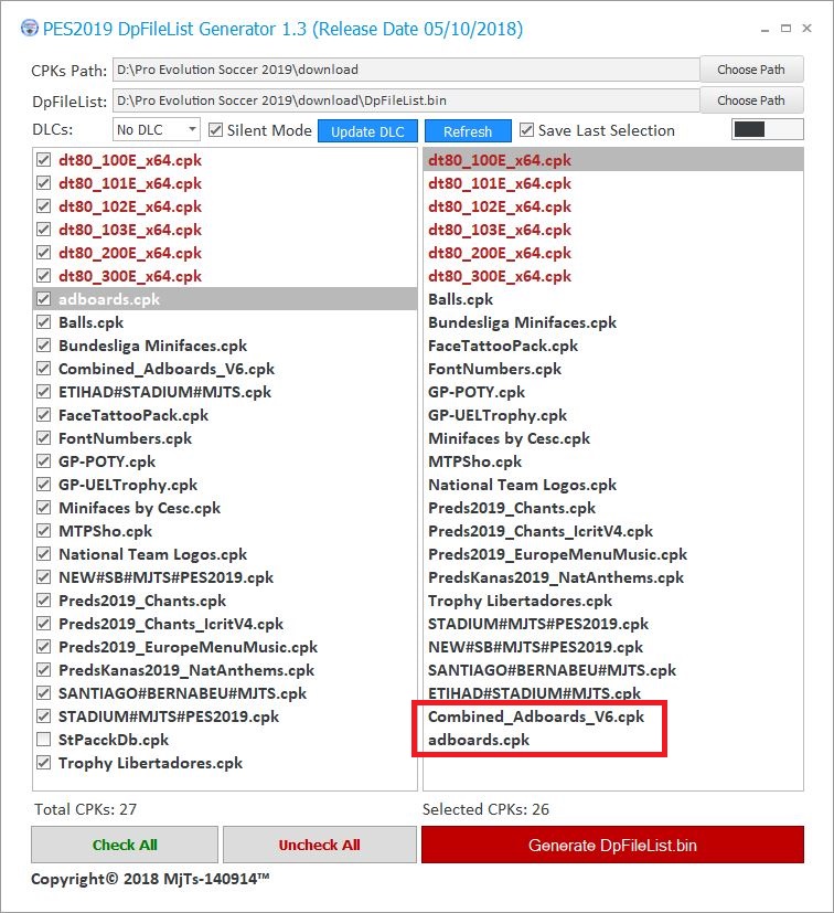 *שימו לב להתקין את הקבצים “adboards.cpk” + “Combined_Adboards_V6.cpk”