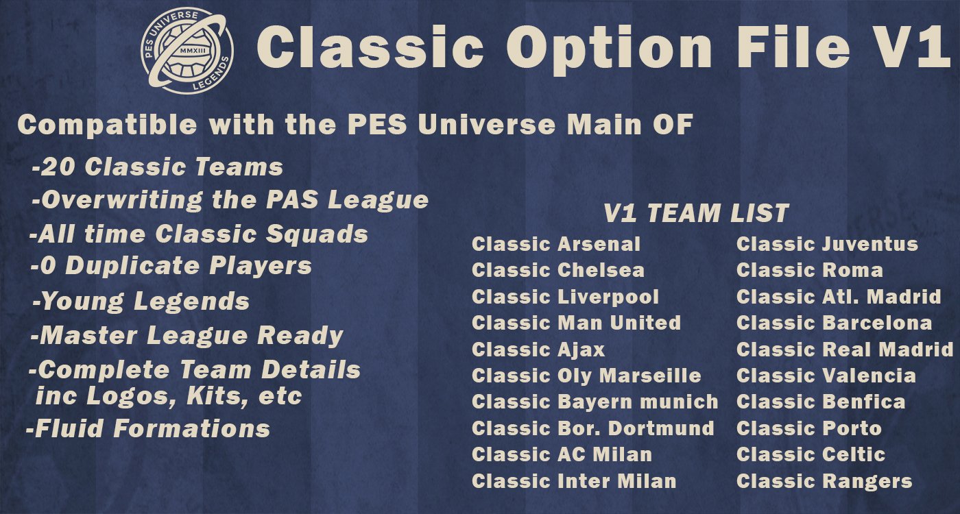 PES20 PS4 / קבוצות קלאסיות גרסה 1.0 – PESUniverse Classic Option File V1